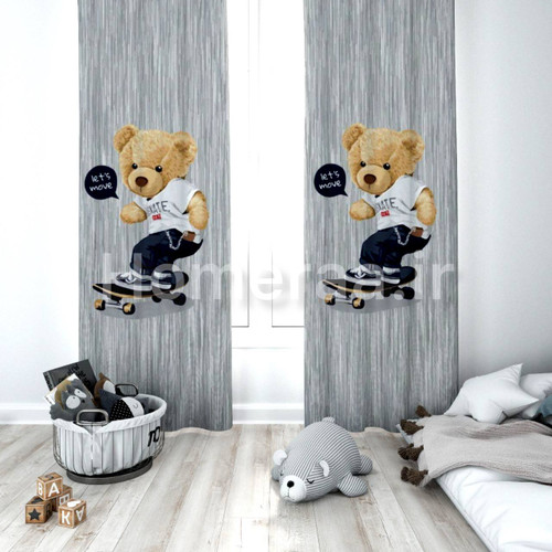 پرده پانچی بچگانه پارچه ترک دوخت عالی طرح خرس تنبل