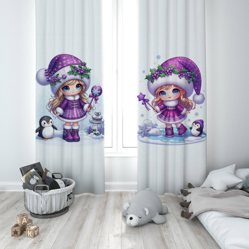 پرده پانچی دخترانه پارچه ترک دوخت عالی طرح کرومی زمستونی