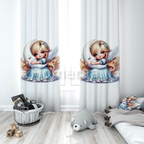 پرده پانچی دخترانه دوخت عالی طرح فرشته و ستاره