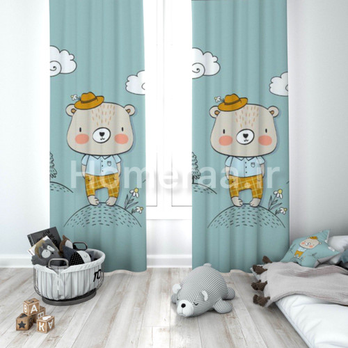 پرده پانچی بچگانه پارچه ترک دوخت عالی طرح خرس تنبل