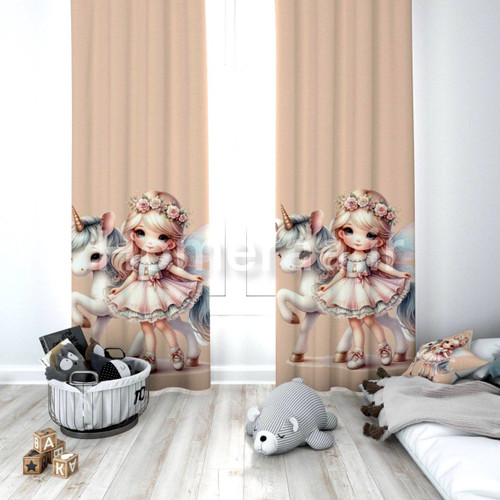 پرده پانچی دخترانه با کیفیت طرح پرنسس و یونیکورن