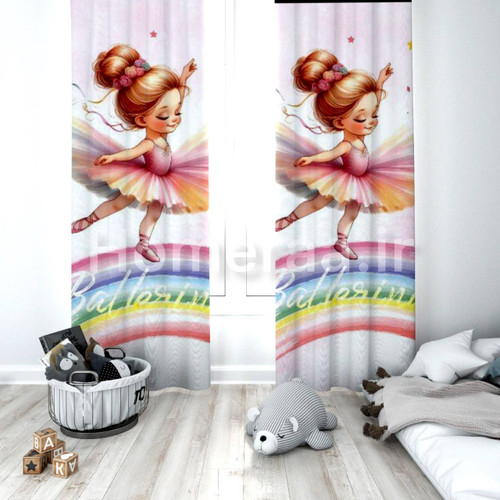 پرده پانچی دخترانه دختر بالرین رنگین کمان
