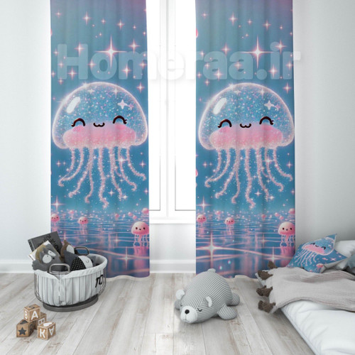 پرده پانچی دخترانه طرح عروس دریایی مدل ۶۶۴