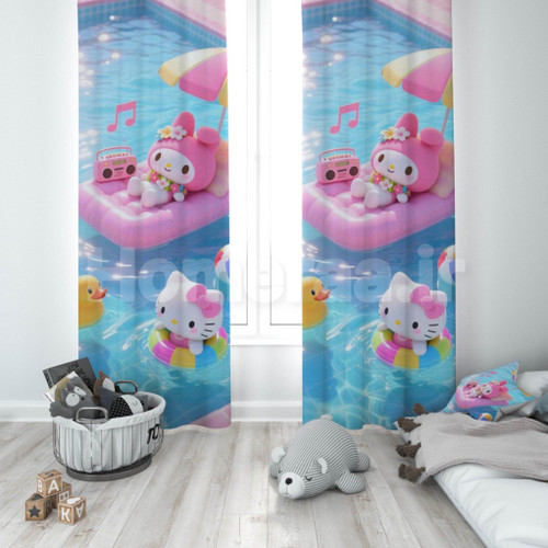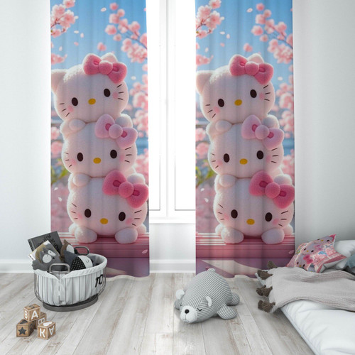 پرده پانچی دخترانه طرح هلو کیتی