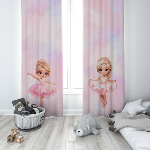 پرده پانچی فانتزی صورتی دخترانه طرح دختر بالرین مدل ۷۰۲