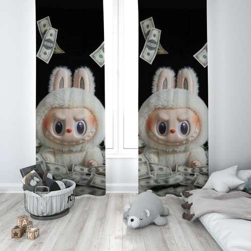 پرده پانچی دخترانه سه بعدی طرح لبوبو صورتی