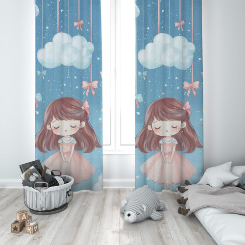 پرده پانچی دخترانه رویایی طرح دختر و ابر