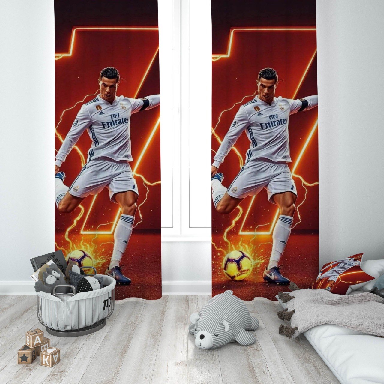 پرده پانچی پسرانه قرمز طرح رونالدو