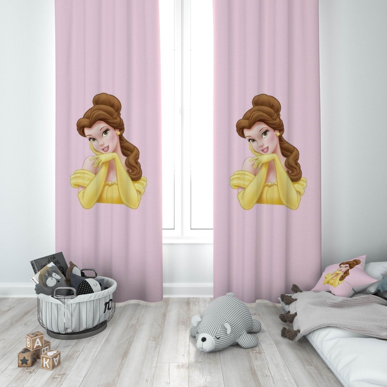 پرده پانچی دخترانه طرح پرنسس دیو و دلبر