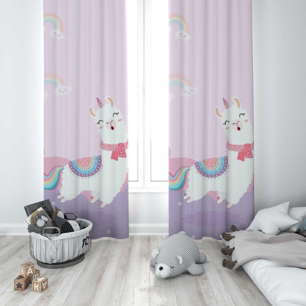 پرده پانچی دخترانه پارچه ترک طرح لاما