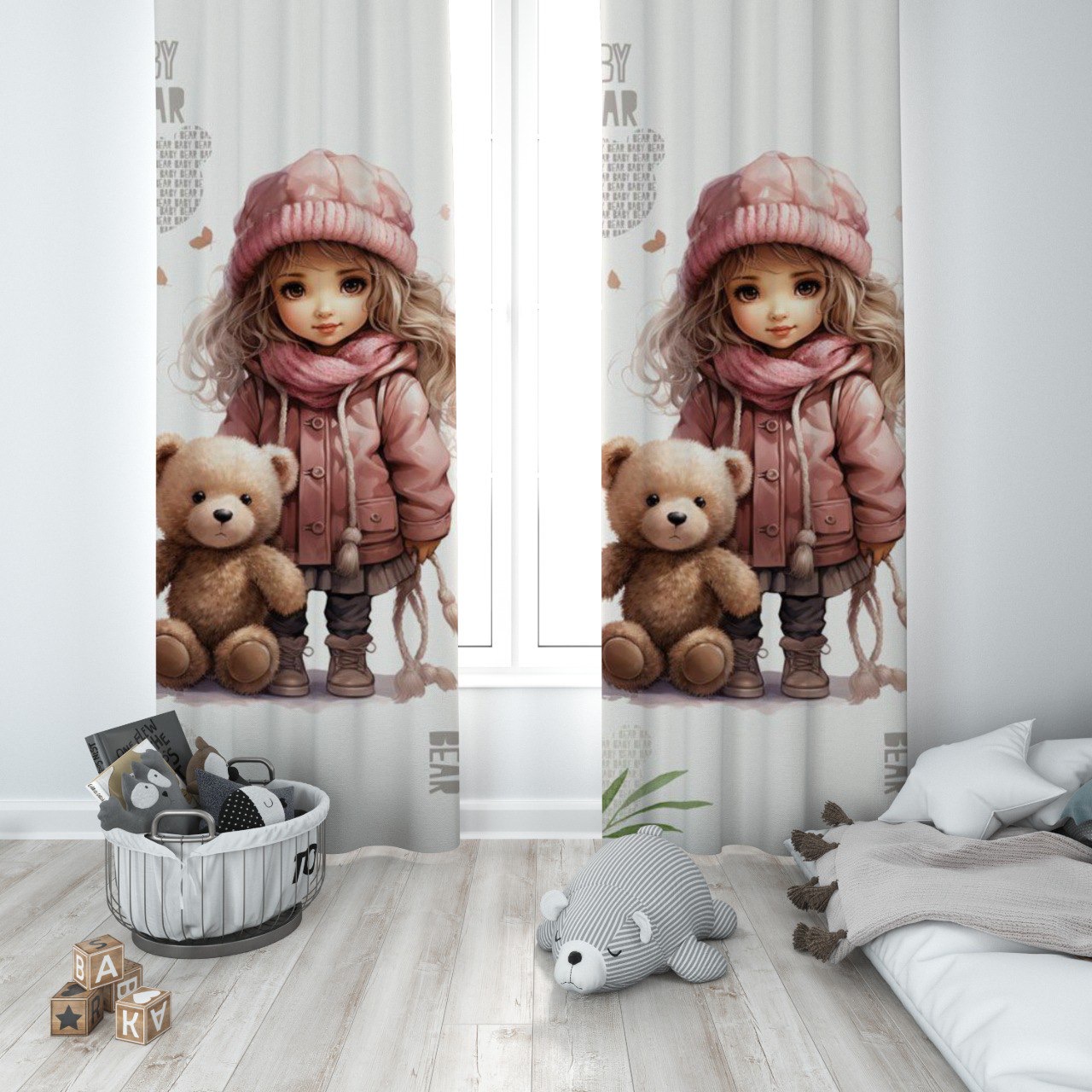 پرده پانچی دخترانه دوخت عالی و پارچه ترک طرح دختر و تدی