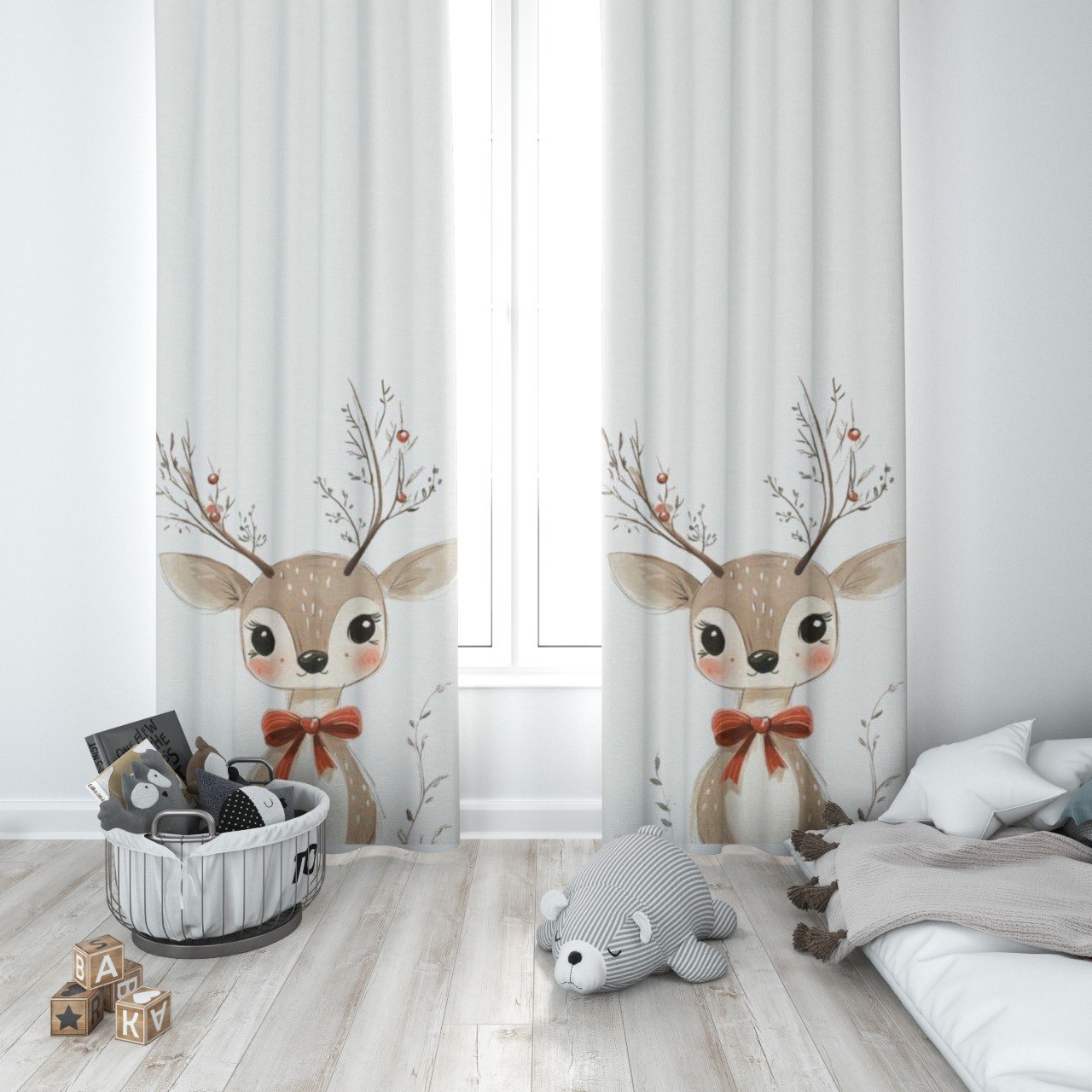 پرده پانچی دخترانه دوخت عالی طرح گوزن زمستونی