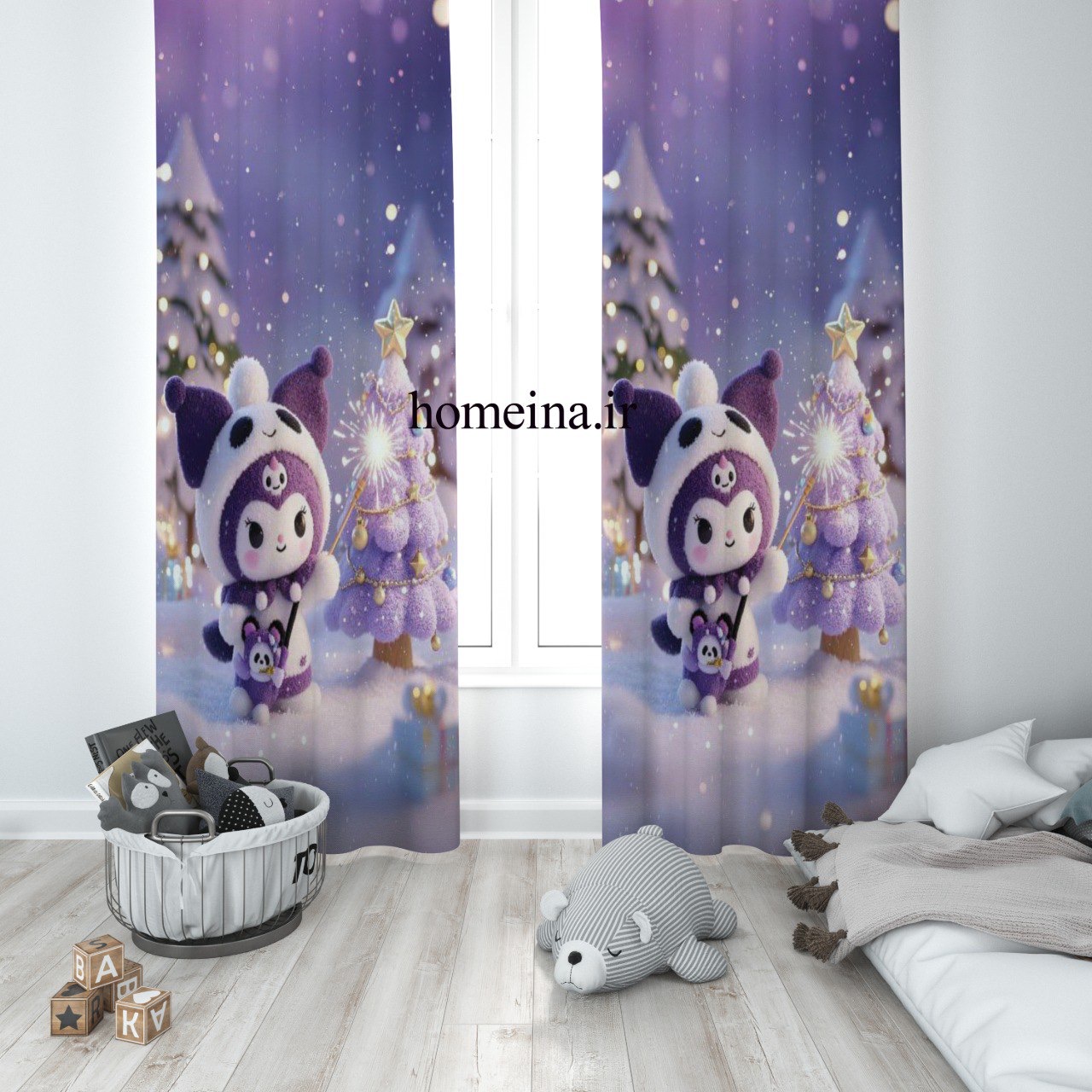 پرده پانچی دخترانه پارچه ترک دوخت عالی طرح کرومی زمستونی