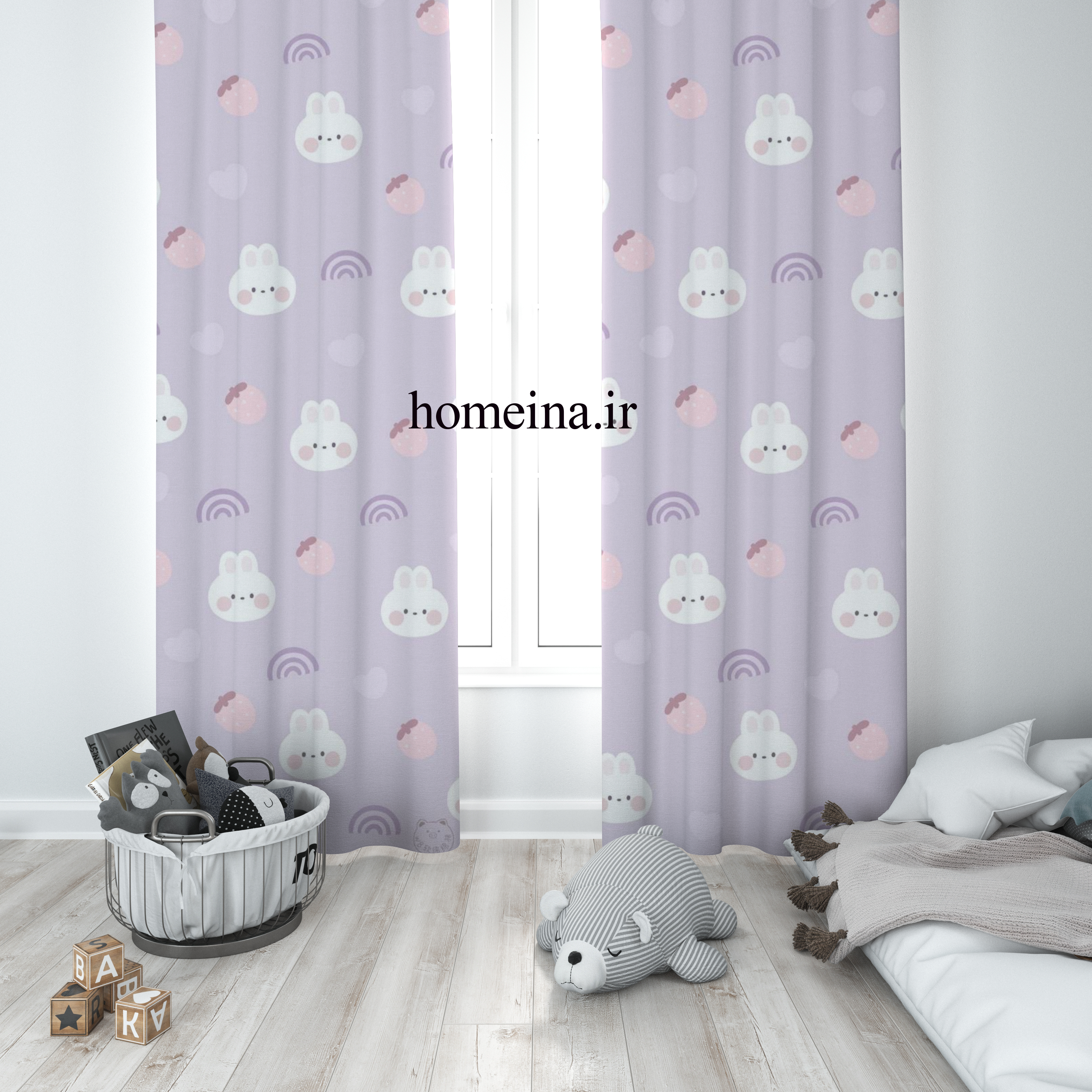 پرده پانچی دخترانه پارچه ترک دوخت عالی طرح مینیمال خرگوش