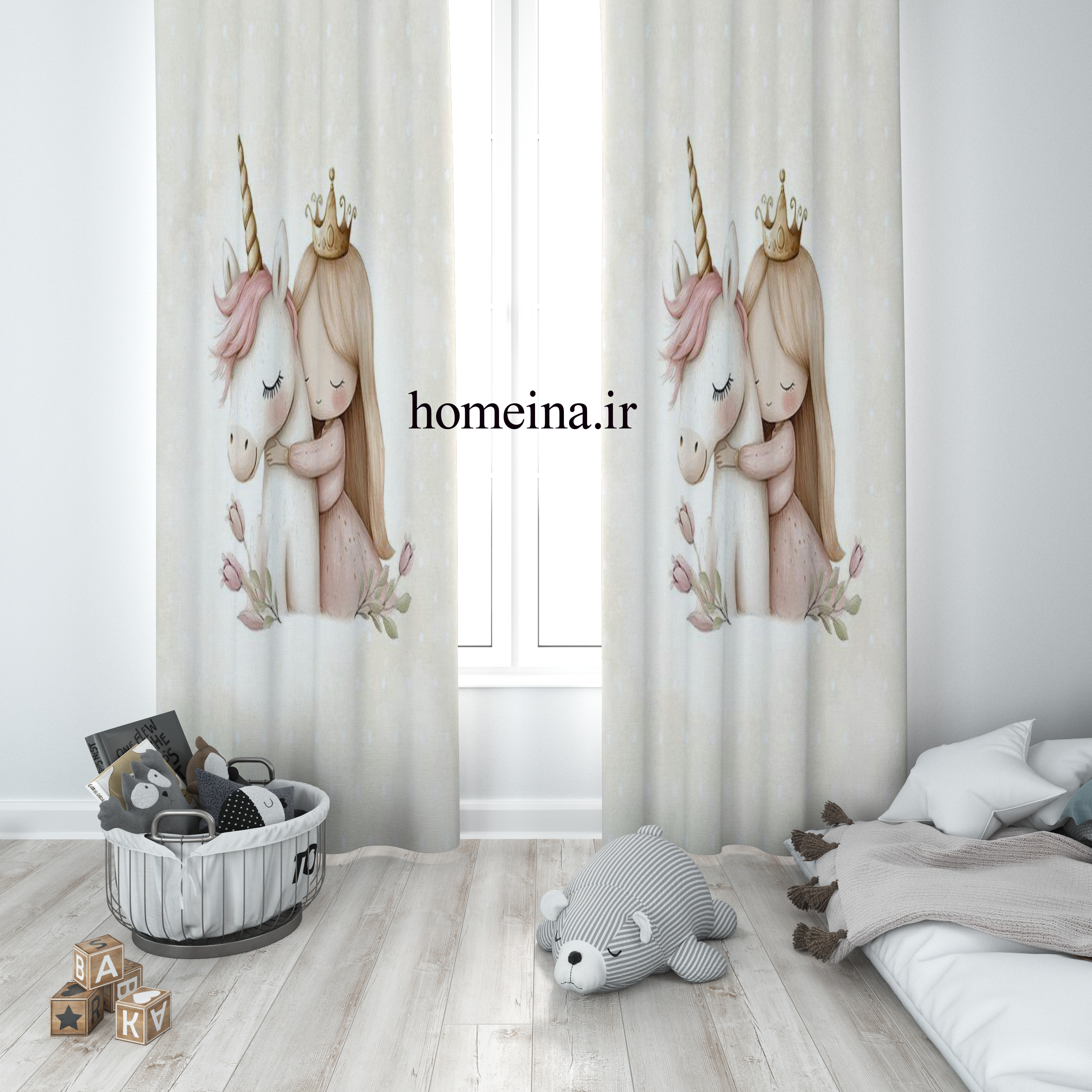پرده پانچی دخترانه با کیفیت طرح پرنسس و یونیکورن