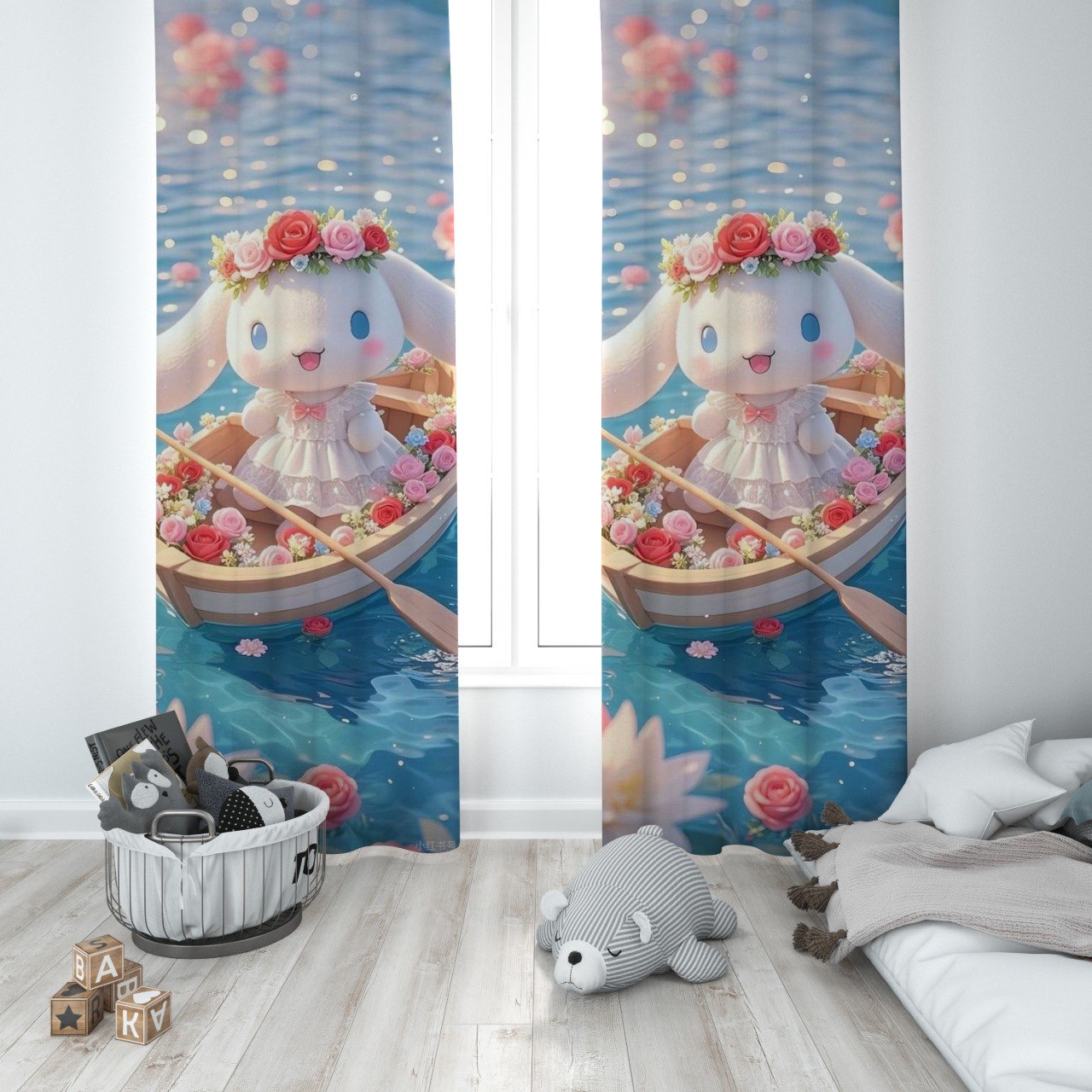 پرده پانچی دخترانه خرگوش گل گلی