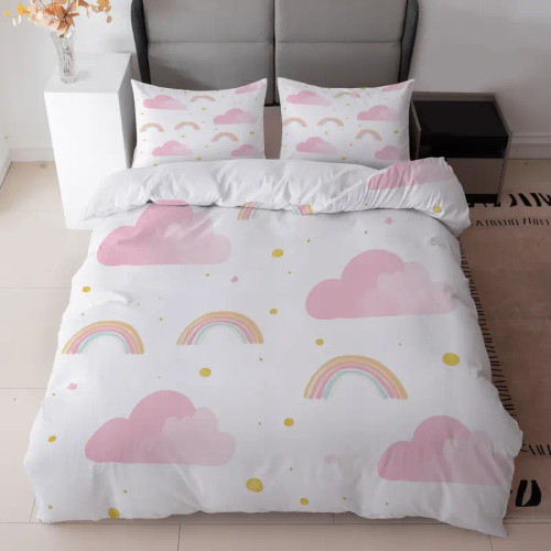 روتختی دخترانه پارچه ترک طرح رنگین کمان و ابر صورتی
