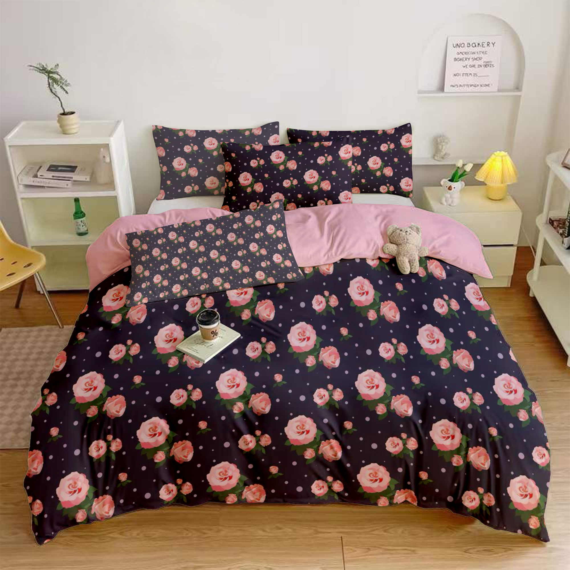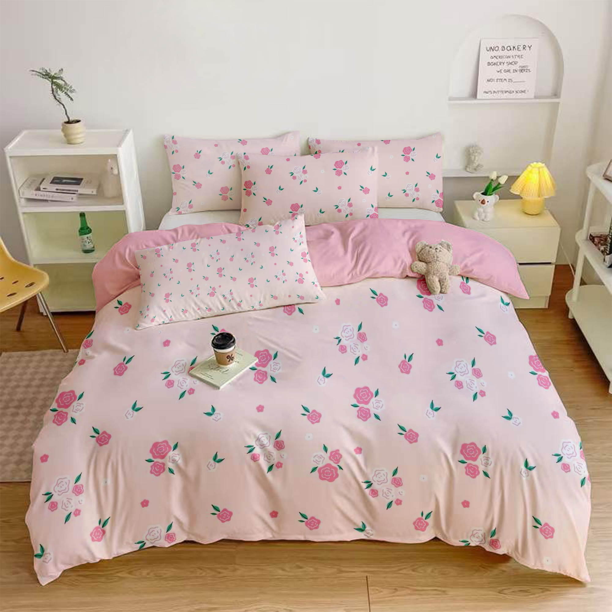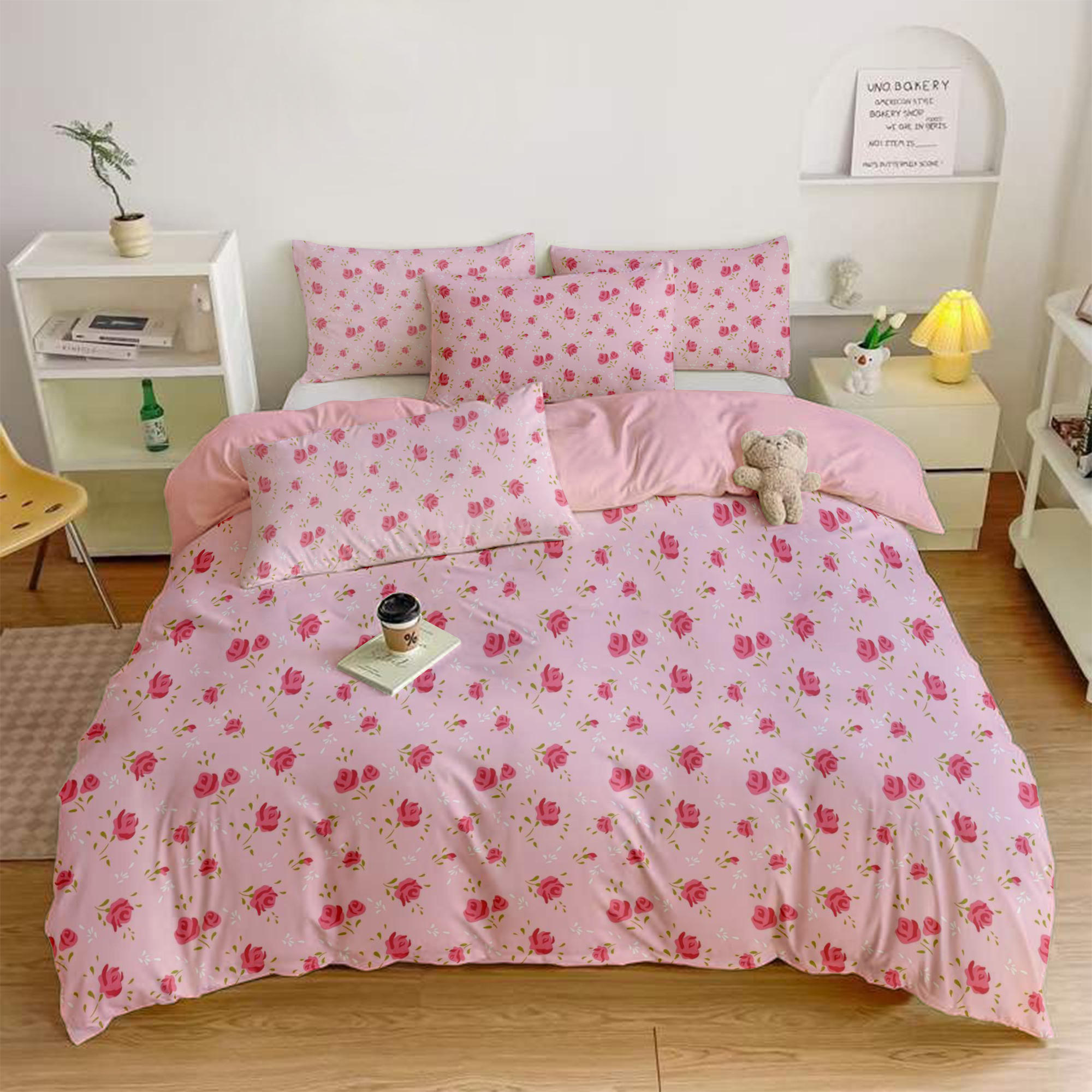 روتختی دخترانه شیک طرح کلاسیک گل نسترن صورتی