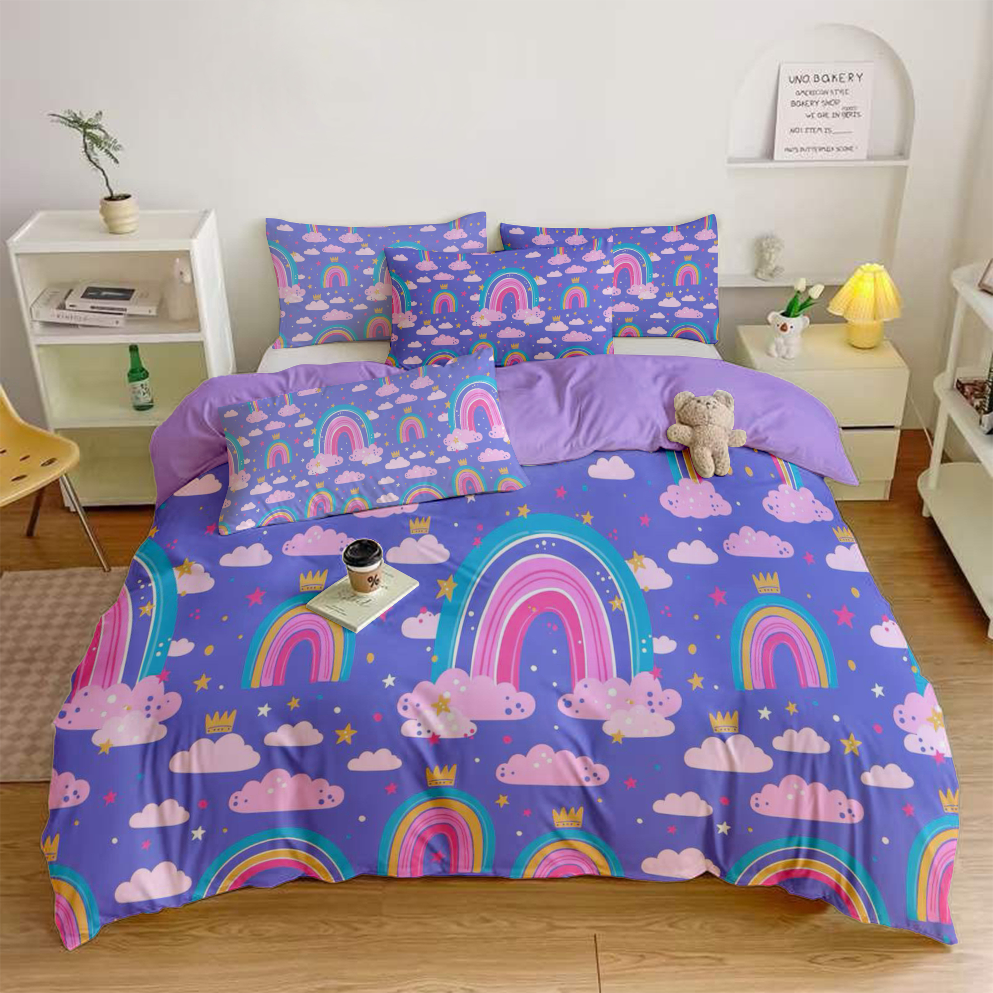 روتختی دخترانه پارچه ترک طرح رنگین کمان و ابر صورتی