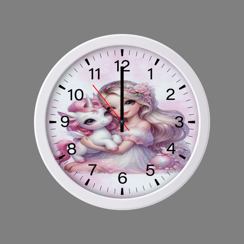 ساعت دیواری دخترانه طرح دختر و یونیکورن