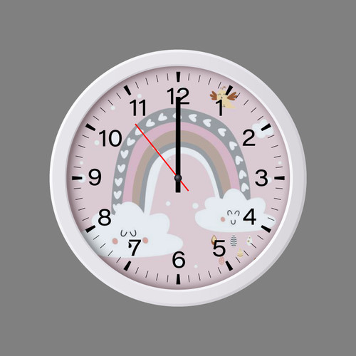 ساعت دیواری دخترانه طرح رنگین کمان صورتی