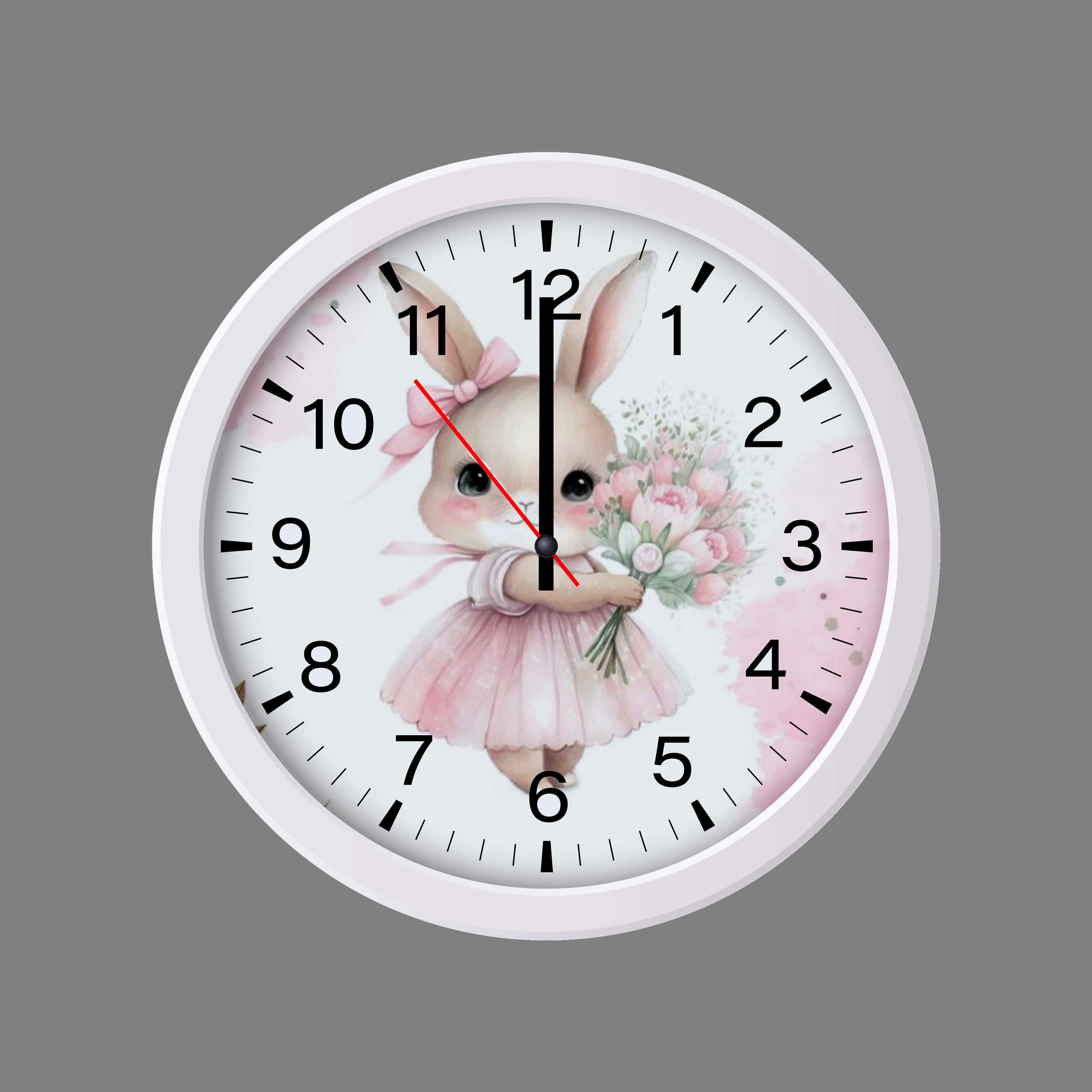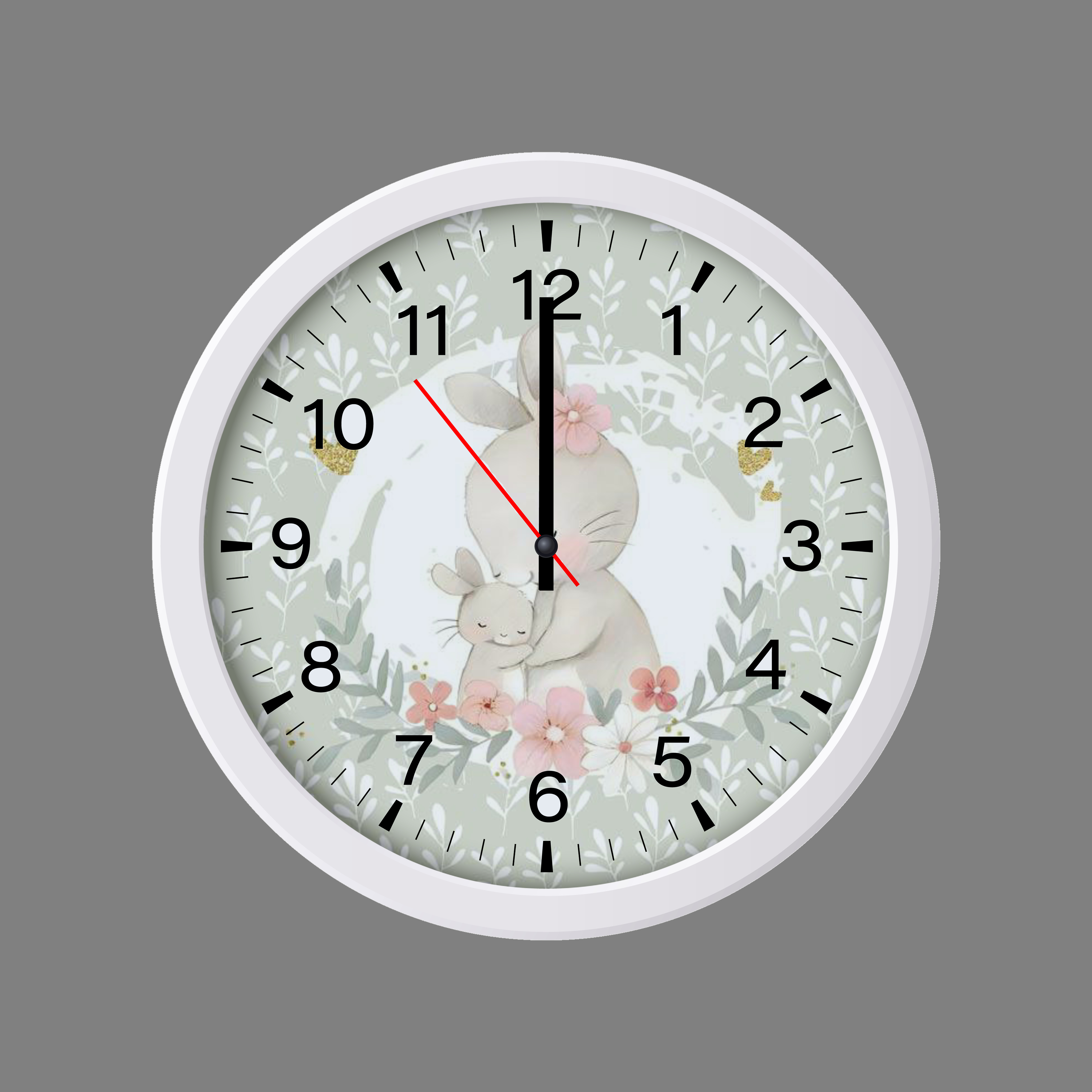 ساعت دیواری طرح دخترانه خرگوش و گل