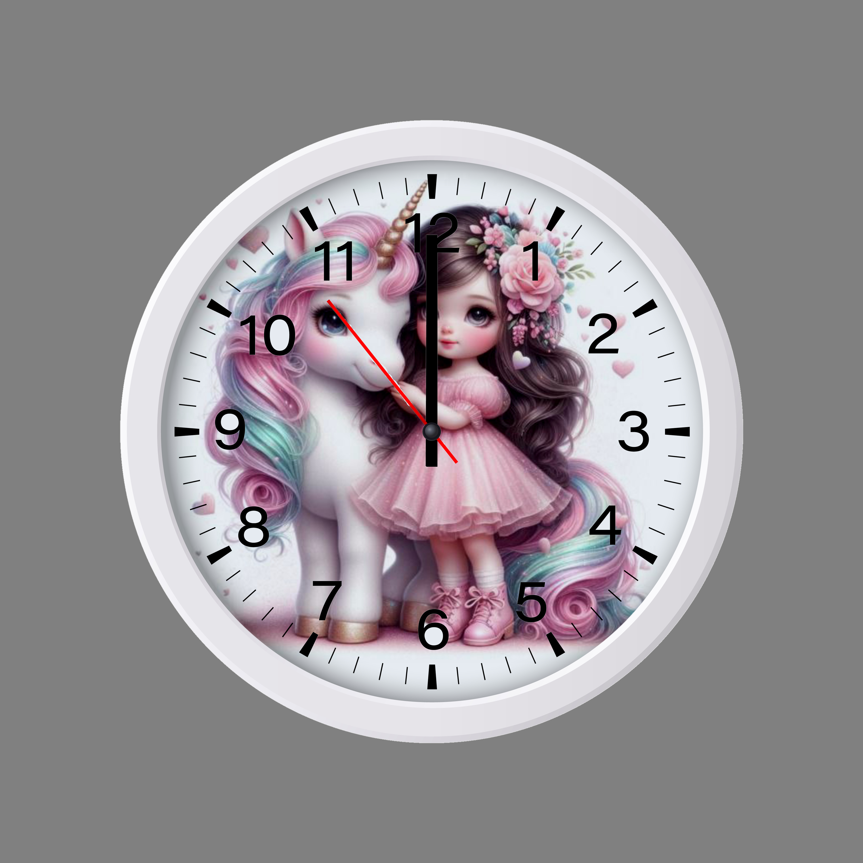 ساعت دیواری دخترانه طرح دختر و یونیکورن