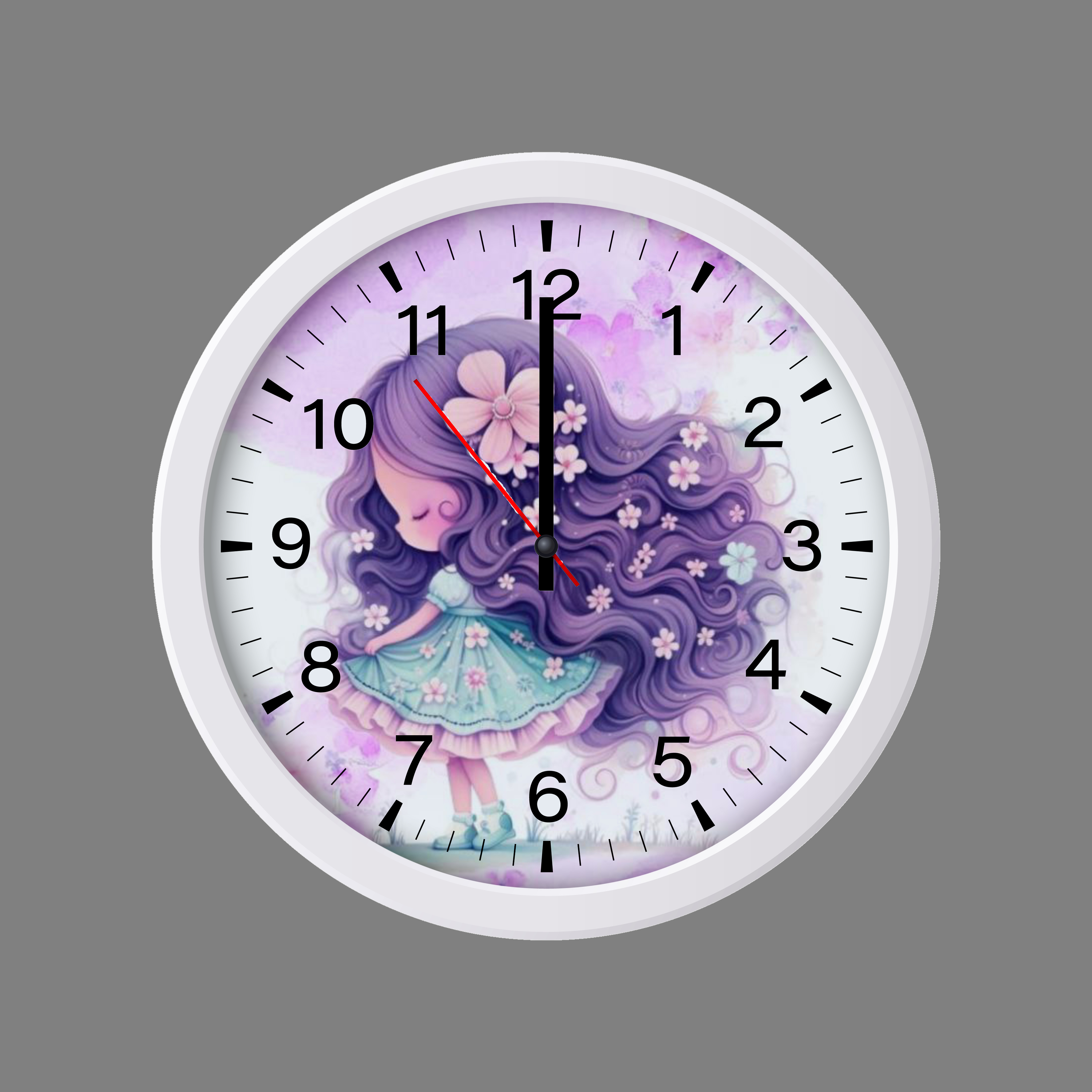 ساعت دیواری دخترانه طرح دختر موفرفری بنفش