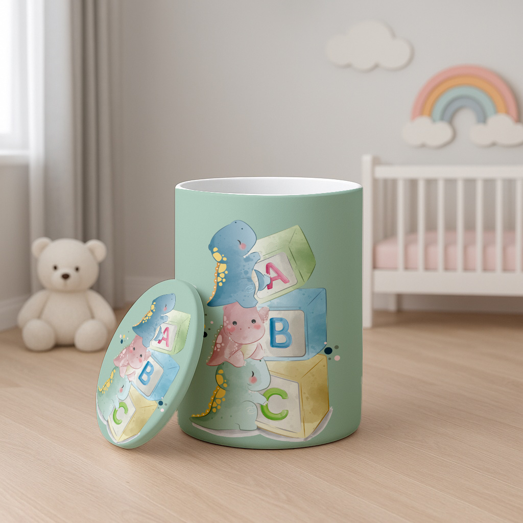 باکس وسایل کودکانه طرح دایناسور و مکعب بازی