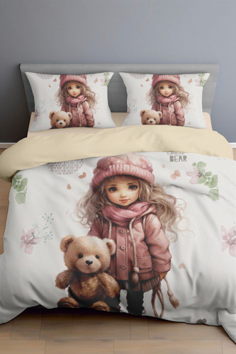 روتختی دخترانه چاپ کامپیوتری و دوخت عالی طرح دختر و تدی