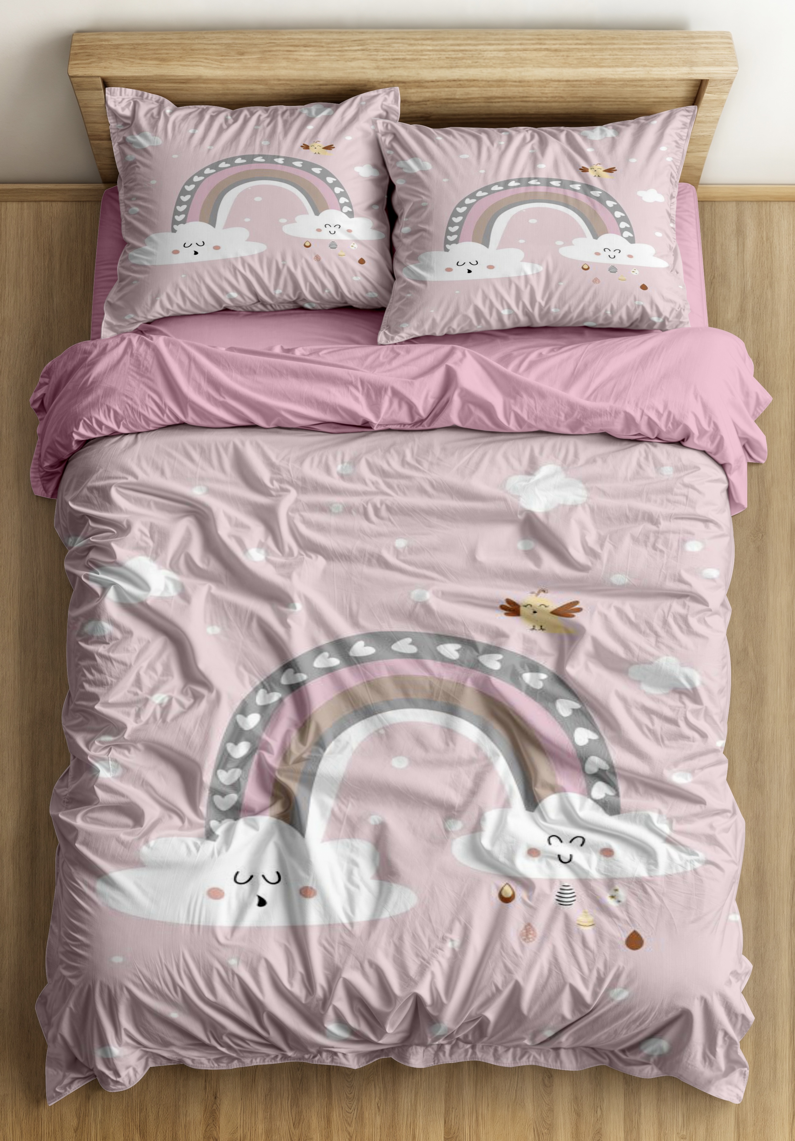 روتختی پارچه ترک بچگانه طرح تدی و رنگین کمان