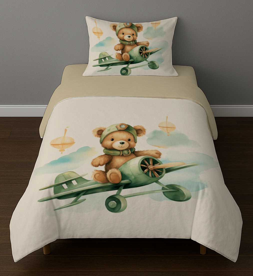 روتختی دخترانه پارچه ترک طرح خرس کله فندقی