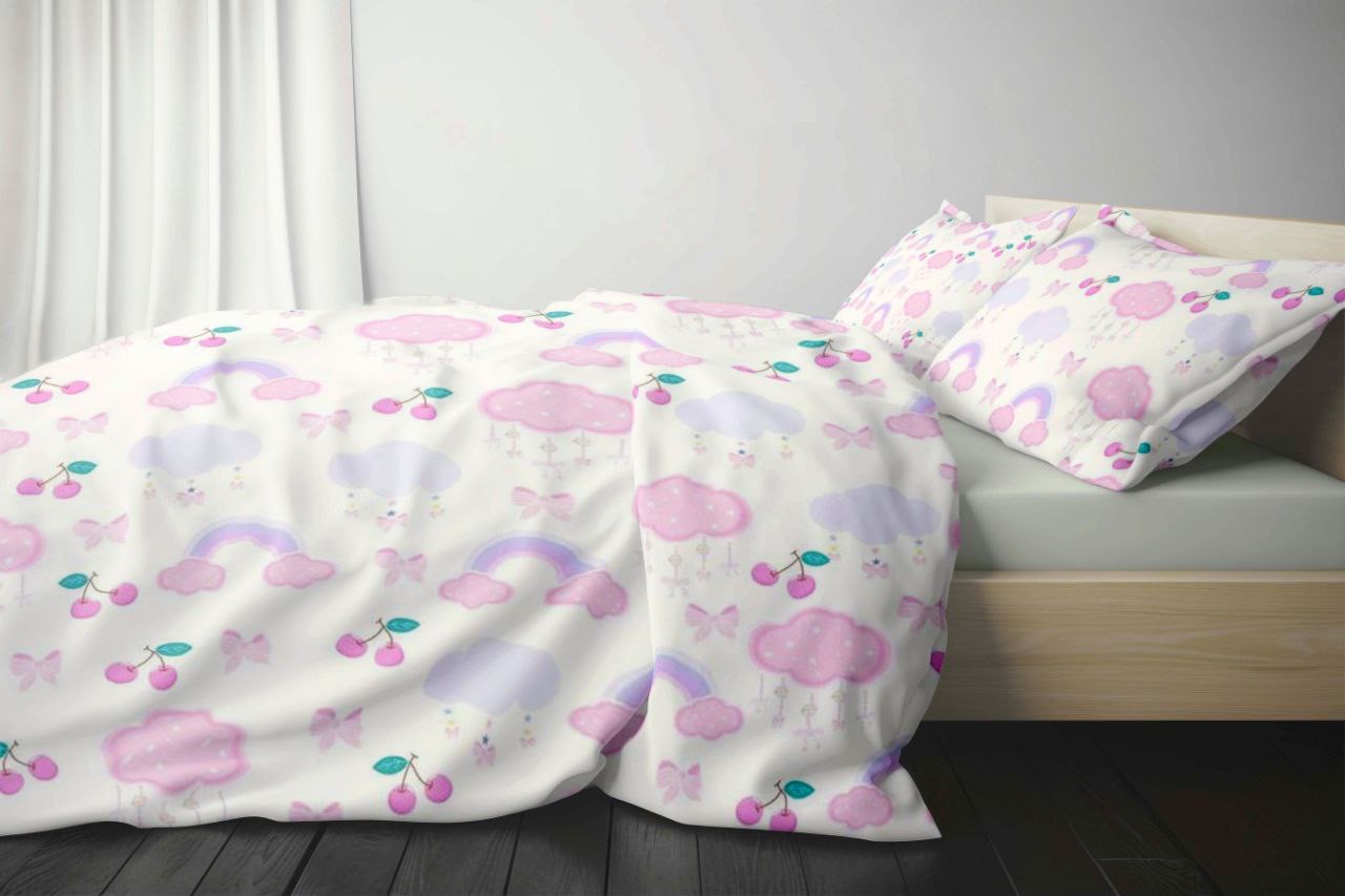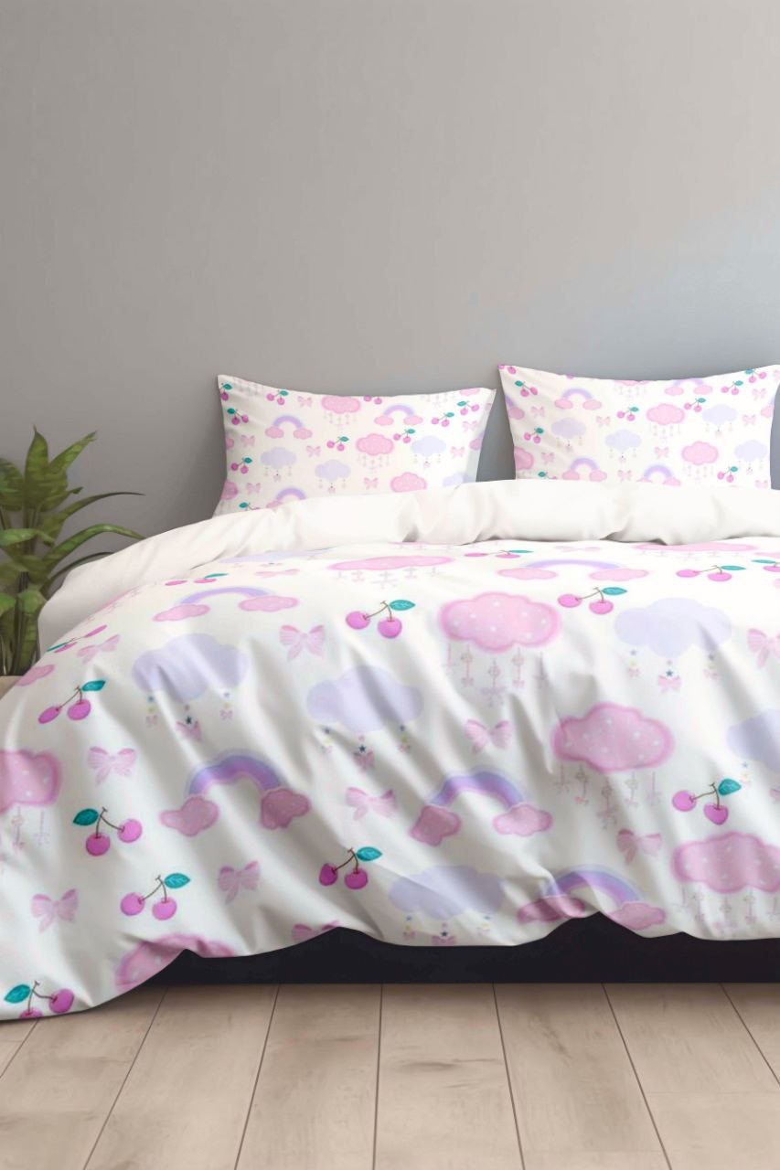 روتختی دخترانه پارچه ترک طرح رنگین کمان و ابر صورتی
