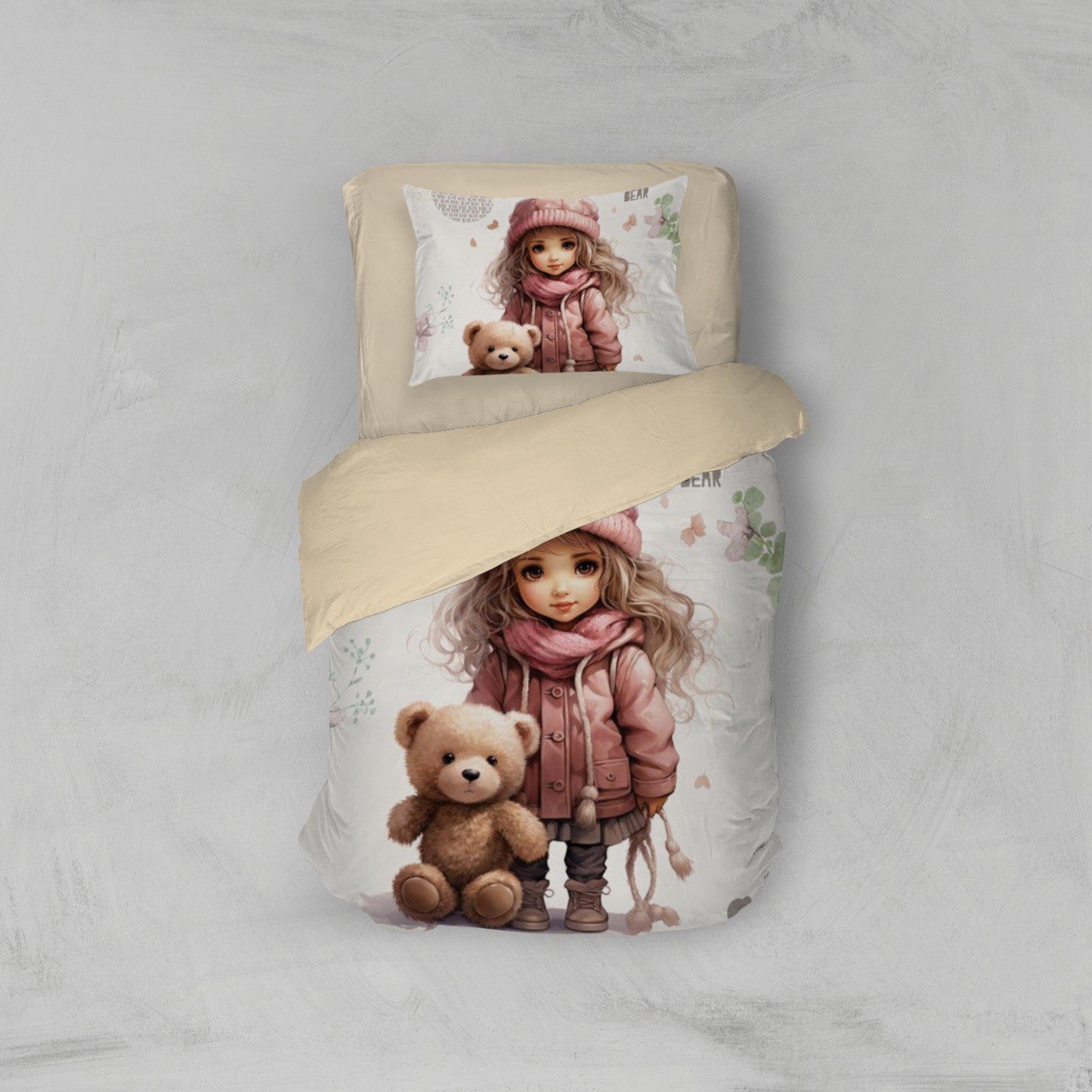 روتختی دخترانه چاپ کامپیوتری و دوخت عالی طرح دختر و تدی