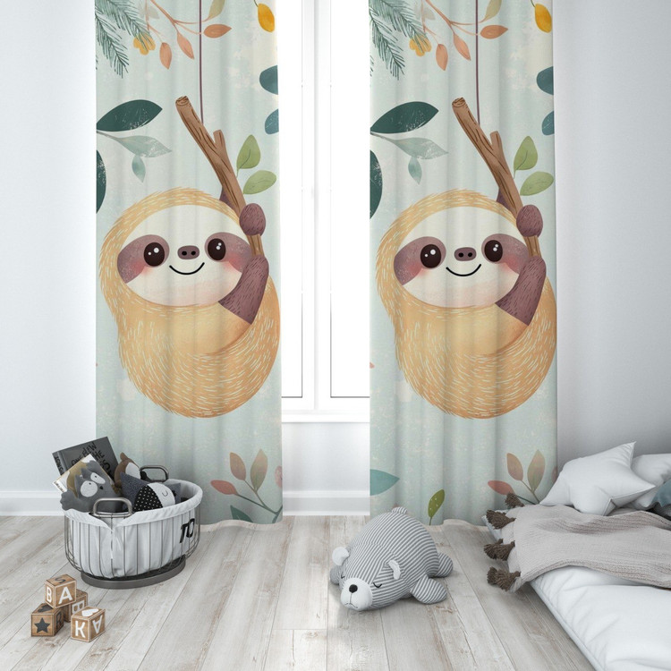 پرده پانچی بچگانه پارچه ترک دوخت عالی طرح خرس تنبل