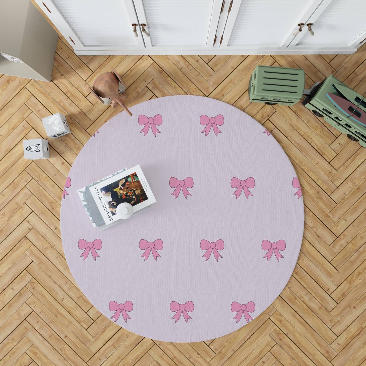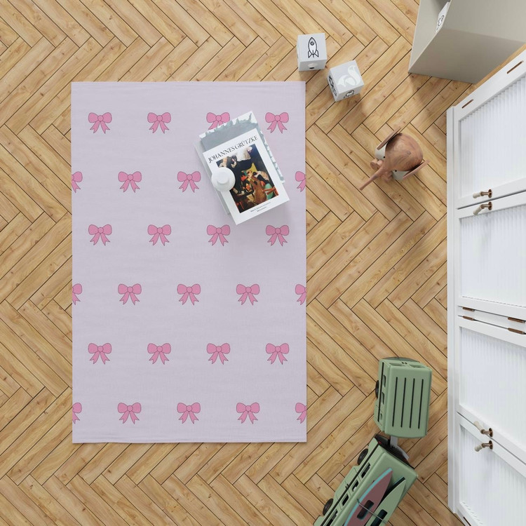 فرشینه دخترانه مخمل طرح پاپیون صورتی