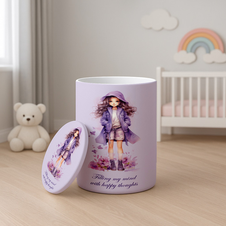 باکس وسایل دخترانه طرح دختر با لباس بنفش