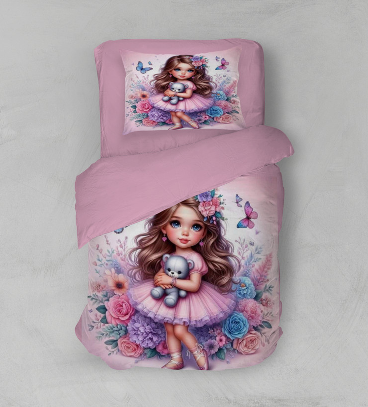 روتختی دخترانه طرح دختر لباس صورتی و تدی