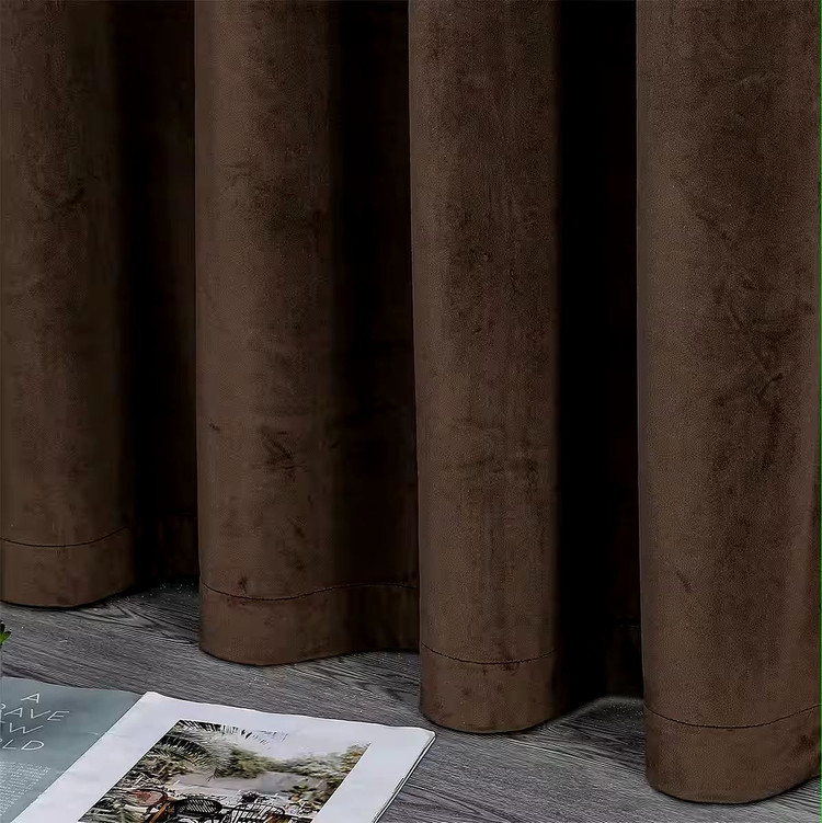 پرده پانچی مخمل کالیفرنیا رنگ قهوه‌ای