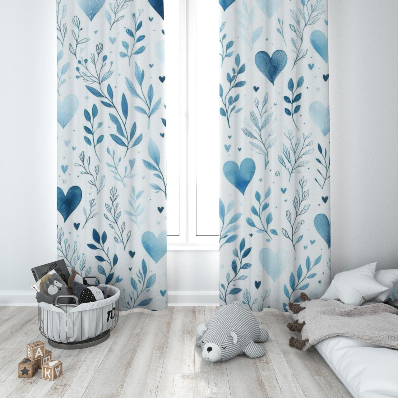 پرده پانچی دخترانه با پارچه ترک طرح قلب ابی
